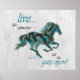 Brighten Sie Ihre Zuhause mit diesem einzigartigen "One Of A Kind" Pferdeposter. Es verfügt über eine Galopp Pferd Silhouette in Türkis, Schwarz & Gold und die Inspirierend Worte..."LEBEN WIE JEMAND VERLASSEN DAS Tor OFFEN"! Dies ist ein Original Grafikdesign von Artist Kerry Miller.