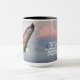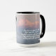 Diese inspirierende Adler-Schrift-Tasse zeigt majestätische Bald-Adler, die sich über dem Washington-See und vor der olympischen Bergkette im Staat Washington erhebt, umgeben von Nebel und Wolken, und dem Bibelverse von Isaiah 40:31, in dem steht: "Wer auf dem LORD wartet, wird seine Kraft erneuern; sie werden sich wie Adler erheben, sie laufen und nicht Sei müde, sie sollen laufen und nicht ohnmächtig werden." Der Gipfel hinter dem Adler heißt "Die Brüder". Dieses schöne Kunstdesign ist von TK Goforth, urheberrechtlich geschützt und alle Rechte vorbehalten und von dem Künstler unterschrieben.