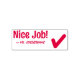 Dieses positive Gummi Briefmarke Design beinhaltet die Lobesbotschaft "Nice Job!" und den Namen eines Tutor. Es hat auch ein dekoratives Markierungssymbol. Es könnte von einem Lehrer, Erzieher, Ausbilder oder Tutor bei der Bewertung der Studentenarbeit verwendet werden, um anzuzeigen, dass ein Student eine außergewöhnliche Arbeit geleistet hat.