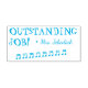 Dieses inspirierende Design aus Gummi-Briefmarke beinhaltet die ermutigende Botschaft "AUSSTEHENDE JOB!" und einen eigenen Lehrernamen. Es verfügt auch über eine dekorative Beamen sechzehnte Noten. Es könnte von einem Lehrer, Pädagogen oder Tutor verwendet werden, um anzuzeigen, dass der Schüler gut abgeschnitten hat.