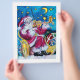 Musikalische, skurrile und künstlerische Aquarellmalerei mit lebhaften roten, blauen, gelben, weißen Farben von Bulgan Lumini (c).
