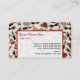 Eine modebezogene Visitenkarte mit einem Vintagen Glamour-Themenmuster. Das Design besteht aus Kirschen, einer rote Rose, einer rot-schwarzen Katzenauge-Sonnenbrille, einer Leopardendrucktasche, roten und schwarzen Ankern und einem roten Lippenstift. Design hat ein rotes und schwarzes Farbschema.