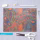 Pfau inspirierte Seidenpapier als abstrakte Malerei in lila blauer ond Orange.