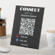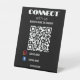 Das elegante, schwarze Podest-Schild, das speziell für kleine Unternehmen konzipiert wurde. Dieses moderne und kühn gestaltete Design besticht durch einen klassischen schwarzen Business-QR-Code für Instagram und Facebook, der Kunden einlädt, sich mühelos mit Ihnen in den sozialen Medien zu verbinden. Dieses schlichte und dennoch mächtige Werbeschild ist ein Ausdruck zeitgenössischer Eleganz. 'Mit uns verbinden'-Eingabeaufforderungen und integrierte QR-Codes machen die Arbeit mit Ihrem Unternehmen nahtlos. Erhöhen Sie Ihre Marke, ziehen Sie Social Media Anhänger an und machen Sie mit diesem schwarzen Podestal-Zeichen einen bleibenden Eindruck. Verbinden Sie sich mit uns - es ist mehr als nur Geschäft; es ist eine moderne Verbindung