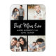 Benutzerdefinierter Muttertagmagnet personalisiert mit Ihren Fotos und Texten. Dieses moderne minimalistische Design verfügt über ein Foto-Collage-Layout für 4 quadratische Instagram-Fotos und ein handgeschriebenes Style-Skript, das "Beste Mama je - Muttertag" ausliest oder mit einer eigenen speziellen Nachricht versehen ist. Verwenden Sie die Designtools, um die Hintergrundfarbe zu ändern, mehr Fotos hinzuzufügen, den Text zu bearbeiten und die Schriftart und Farben anzupassen, um Ihre eigenen Muttertagskarten für Mama und Großmutter zu erstellen.