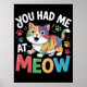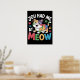 Diese hübsche Grafik zeigt eine fröhliche, mehrfarbige Cartoon-Katze mit grünen, gelben, orangefarbenen, blauen und lila Fellfarben, die mit einem ekstatischen, offenen Ausdruck dargestellt wird. Um die glückliche Katze herum sind verstreute bunte Pfotendrucke und lebendige funkelnde Akzente. Der fette Text "YOU HAD ME AT MEOW" wird in lebendigen, kontrastreichen Farben dargestellt und trägt humorvoll den unwiderstehlichen Anklang der ersten Vokalisierung einer Katze auf. Das Design ist Set auf einem soliden schwarzen Hintergrund. Digitaler Download nur für den persönlichen Gebrauch.