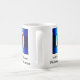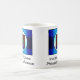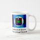 Eine coffe Tasse mit dem Schullogo auf ihm.