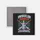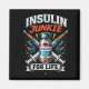 Ein kühnes, kantiges Grafikdesign mit gekreuzten Spritzen und einer Insulinflasche mit Blitzsymbolen, das das Leben mit Diabetes mit trotziger Humorvorliebe feiert.