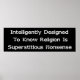Viel Spaß dabei, die Dinosaurier-Leute mit diesem Sprichwort auf einem Shirt, Hut, Knopf, Autoaufkleber und anderen Geschenken anzustoßen: "Intelligent entworfen, um Religion zu kennen, ist abergläubischer Unsinn."