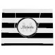 Ein intelligenter Schwarzweiss-Körper stripes große Geschenktasche. Personifizieren Sie dieses klassische Muster, indem Sie die Namens- und mit Monogramm Initiale Ihrer Empfängers hinzufügen. Dieser neue Monogrammentwurf ist ein Teil der schwarzen Party-Wesensmerkmale-Sommer-Farbsammlung.