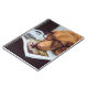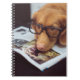 Dieser entzückende Hund ist sicher, Sie lächeln zu lassen! Sie hat auf einem Paar stark-eingefaßten schwarzen Gläsern beim Stillstehen ihres Kopfes auf einem Buch (über Hunde!).
