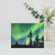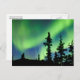 Intensive Aurora borealis über schwarze Fichtentai Postkarte