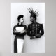 Mit diesem atemberaubenden Schwarz-Weiß-Kunstdruck, der ein avantgardistisches Modeduo präsentiert, können Sie Ihren Platz in vollen Zügen erleben. Dieses beeindruckende Portrait zeigt zwei Figuren: eine Frau mit elegant geschnitztem Haar und ein grafisches Schwarz-Weiß-Ensemble. Ein Mann in einer verzierten, militärisch inspirierten Jacke mit zahlreichen Silberknöpfen und einem dramatischen spitzen Kopfteil. Ihr intensiver, direkter Blick zueinander schafft eine überzeugende Erzählung, die der Komposition Tiefe und Intrige verleiht. In kontrastfarbenem Monochrom in einer unberührten, weißen Studiokulisse präsentiert sich die faszinierende Details ihrer einzigartigen Mode und ihrer Accessoires, die Form, Textur und Silhouette hervorheben. Dieses Stück ist eine kraftvolle Äußerung von Stil und künstlerischem Ausdruck, die perfekt dazu geeignet ist, jedem Wohnzimmer, Schlafzimmer, Büro oder Galerie eine Touch von anspruchsvollem Drama, moderner Eleganz und hoher Mode hinzuzufügen. Ideal für diejenigen, die eine kühne zeitgenössische Kunst und einzigartige Modeästhetik schätzen.