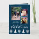 These simple 3 photo folded greeting cards in navy with real silver foil printing are perfect for your interfaith family. A row of glimmering menorahs and trees along with simple modern fonts keep the design uncluttered to showcase your family's pictures. These trendy interfaith holiday folded cards open to a medium blue with the option to add a personalized message for your blended Christmas and Hanukkah family.