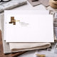 A modern flat notecard designed for interior designers to elevate client communication. Perfect for thank you notes, project follow-ups, or personal touches, this design features a clean geometric logo with warm wood tones and a subtle gold accent. Original art and design © 1201AM Creative Studio