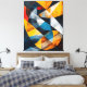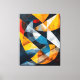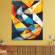 Intersecting planes of gold, deep blue, charcoal, and white converge in a dynamic architectural rhythm. Curved arcs cut through sharp geometry, creating a layered composition that feels both calculated and fluid. Subtle surface textures and fine linear traces add depth, suggesting motion beneath the structure. Interlocking Horizons of Light balances tension and harmony, offering a bold yet refined abstract statement that brings energy and modern sophistication to any space.