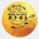Simple and beautiful ink painting of a Horse by RB + Large 2026 (original handwritting) with wishes in many languages: Vietnamese, Chinese, English, Russian French, German, Spanish, Finish, Swedish... Design on classic round sticker with golden textured image as background. Perfect for wishing good luck and wealth for the Chinese and Vietnamese New Year of the Horse 2026.