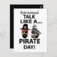 International Talk Like A Pirate Day Postcard Original-Design von Nisha Prabhu. Ahoy Mateys! Machen Sie sich bereit, mit dieser lustigen und festlichen Postkarte den Internationalen Vortrag wie ein Piratentag zu feiern. Schüttelt mir Holz, es ist ein perfekter Weg, Ihre Grüße an alle Ihre Lieblings-Landratten zu schicken. Hosten Sie also das Set- und Piratenflagge-Segel für eine schwindelerregende Zeit mit diesem eingängigen Design. Yo ho, sei kein Skallywag, nimm dir heute die Hände auf diese widerspenstige Postkarte!