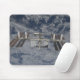 Die Internationale Raumstation, die von einer blauen und weißen Erde zurückgeworfen wird.