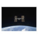 Die internationale Raumstation, die von der Erde umhergerissen wurde, ist mit der Erde besetzt.