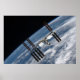 Hinter einer blauen und weißen Erde und der Schwärze des Weltalls wird die Internationale Raumstation von Space Shuttle Endeavour aus gesehen, während die beiden Raumschiffe ihre relative Trennung beginnen. Anfang der STS-126 und Expedition 18 Crews schloss 11 Tage, 16 Stunden und 46 Minuten der Zusammenarbeit an Bord des Shuttleservice und des Bahnhofs. Das Entdocken der beiden Raumfahrzeuge erfolgte um 8.47 Uhr. (CST) am 28. November 2008.