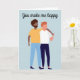 Diese LGBT Grußkarte enthält zwei schwule Männer in der Liebe. Ein Mann in dem Paar ist Afroamerikaner und der andere Mann hatte rotes / braunes Haar. Die Vorderseite dieser süßen interrassischen LGBTQ-Valentinstag- oder Jubiläumskarte lautet: "Jeder Tag mit dir ist ein Abenteuer." Passen Sie das Innere mit Ihrem eigenen Text an.