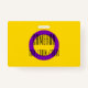 Der Hintergrund ist die Stolperflagge für Intersexuelle. Dies ist ein lila Ring auf einem gelben Hintergrund. Es gibt Platz für einen individuelle Name und Pronomen.