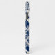 Intricate blue floral pattern on a light background, featuring stylized blooms and curling leaves, evoking a vintage, elegant feel.