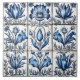 Aus einer Sammlung von Indigo-Azulejo-Fliesen entstehen exquisite Muster mit zarten Blumenmotiven. Diese kunstvoll bemalten Fliesen zeigen die typische Handwerkskunst traditioneller Fliesen, die kulturelle Kunst und Design widerspiegeln.