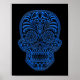 Dieser aufwändige Tag des Toten Zuckerschädels ist mit aufwändigen Wirbel und Punktmustern dekoriert. Die komplexen Linien und Kreise werden hervorgehoben, um einen subtilen Glanz auf der Oberfläche zu erzeugen. Die Augen des Schädels werden durch große stilisierte Blume mit Pedalen repräsentiert, die sich von einem zentralen Kreis ausstrecken. Dieses stilvolle Design ist eine auffallende Darstellung dieses Symbols vom Tag der Toten.