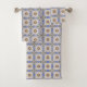 intricate blue, yellow, & white geometric pattern badhandtuch set