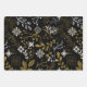 Intricate floral pattern with gold and white branches, leaves, and flowers on a black background. The design feels elegant and sophisticated.