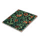 Seamless pattern with orange and pink flowers and green leaves on a black background. The design is vibrant, bold, and intricate.
