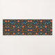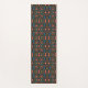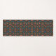 Intricate geometric pattern featuring vibrant orange, blue, and yellow shapes on a dark background. The design is symmetrical and rich in detail.