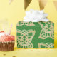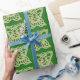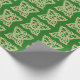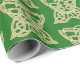 Das wunderschöne Verpackungspapier zeichnet sich durch ein ausgeklügeltes, goldfarbenes und weißes keltisches Schmetterlingsmuster auf grünem Hintergrund aus. Der keltische Schmetterling ist ein Symbol des Souls und der Wiedergeburt