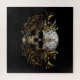 Dieses Bild zeigt einen aufwändig entworfenen Schädel mit Stammesmustern. Das Kunstwerk verwendet überwiegend ein Schwarz-Gold-Farbschema, das dem Stück ein luxuriöses und gotisches Ambiente verleiht. Der Schädel ist mit geschmückten, wirbelnden Designs detailliert und von kunstvollen abstrakten Formen umgeben, die seine Stammesästhetik verstärken. Die sorgfältige Detailliertheit und die reichen Farben machen diese digitale Illustration zu einem auffallenden Kunstwerk, perfekt für Fans von dunklen und dekorativen Themen oder als Inspiration für Tattoos.
