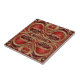Symmetrisches Design mit aufwändigen Mustern in Goldtönen auf einem tiefen roten Hintergrund. Die dekorativen Elemente sind gekrümmte Linien und Wirbel, die miteinander verwoben sind und eine reiche und raffinierte Ästhetik erzeugen. Der Zierstil erinnert an klassische Kunst mit einem Schwerpunkt auf Eleganz und dreidimensionalen Details.