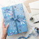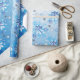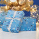 Intrikierte blaue und weiße Sterne und Schneeflock Geschenkpapier