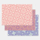 Intricate Muster Wrapping Paper Sheets. 3 x Gemustertes Packpapier in den Farben pfirsichfarben/weiß, rot/lila und blau/pastellgrün. Machen Sie Ihre Geschenkverpackung lustig und kreativ mit 3 verschiedenen Mustern/Farben.
