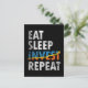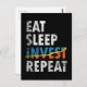 Schöne und motivierend Geschenkidee und Postkartendesign für jeden Händler und Investor Sprichwort "Eat sleep invest Repeat". Gut für jeden Händler, der gerne sein Geld in den Aktienmarkt, Kryptowährung oder echtes Anwesen investiert. Das ist perfekt für jeden Investor.
