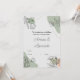 Invitación para compromiso o boda estilo floreado verde. En el medio escribir los nombres de la pareja en letra. Tiene espacio para completar fecha, lugar y hora.