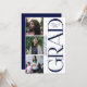 Modern and elegant graduation announcement featuring a clean, minimalist layout with a soft neutral background. The design highlights three photo panels showcasing the graduate in candid and portrait-style moments, creating a personal feel. A bold vertical “GRAD” typography element adds a contemporary touch, while within the letter day displays “Class of 2026” for a polished finish. The graduate’s name and school are presented in a sleek, vertical format, making this invitation perfect for showcasing achievements with style and sophistication. The back includes the details of the celebration and the RSVP response details.
