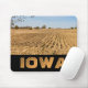 Panoramasicht auf ein Iowa-Maisfeld mit "IOWA"-Text.