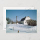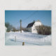 Eine Scheune, die von der Straße aus auf einem Bauernhof in Iowa im Winter ohne Auswirkungen oder Touch. Die Sträucher sind Lilaks.