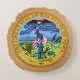 Das Große Siegel des Staat von Iowa wurde 1847 gegründet und zeigt einen Bürgersoldaten, der in einem Weizenfeld stehend ist, umgeben von Symbolen, die im frühen historischen Iowa wichtig sind, darunter Landwirtschaft, Bergbau und Transport mit dem Mississippi-Fluss im Hintergrund. Ein Adler über dem Kopf trägt das Motto des Staat.