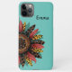 iPhone 11 Pro Max Case mit hübsch heruntergekommener Sonnenblume auf aquamarinem grünem Hintergrund. Der Name des Falls kann geändert werden. Dank Creative Fabrica für einige der Elemente in der Gestaltung.