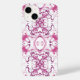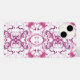 Dieses iPhone 14 Handy Gehäuse wird in einem rosa und weiß schwirl gedruckten Design gezeigt. Passen Sie dieses Objekt an oder kaufen Sie, wie es ist.