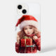 iPhone 14 Hüllen Weihnachts Sonderbild auf der Rückseite . Dieses Bild sehr hübsch kleine Mädchen gegen die Santa Klausel.