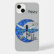 iPhone 14 Plus Fall in blau und grau mit Mond und Libellen. Der Name "Paisley" kann geändert werden "Wildes Soul" ist dauerhaft. Dank Creative Fabrica für einige der Elemente in der Gestaltung.
