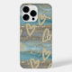 Schöne farbige Telefonzelle. Die Farben sind goldfarben, aquamarin und die Herzen im Hintergrund. Schönes, einfaches Design. Ideal für jedes iPhone 14 Pro Max.